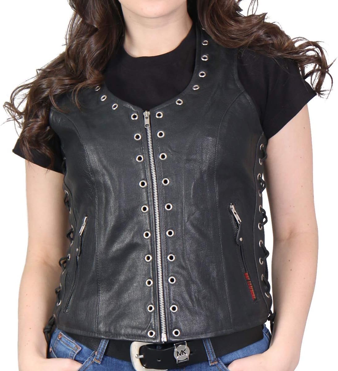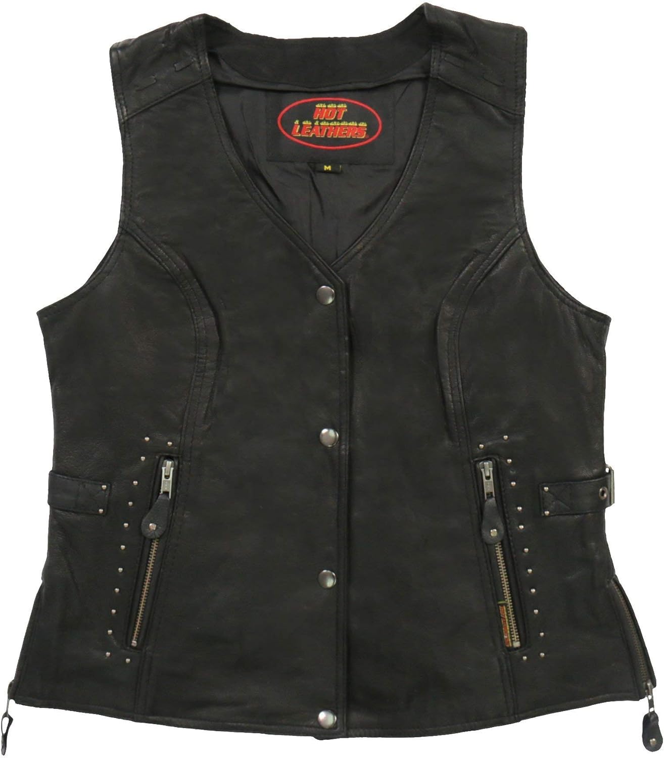 Hot Leathers VSL1006 Ladies Black Leather Braided Vest FeaturesMade from Premium Cowhide2 Outer Slit PocketsBraided DetailAdjustable Side LacesSplit BackSoft Nylon LiningBlack SnapsRide Fast - Live Hard with Hot Leathers Apparel