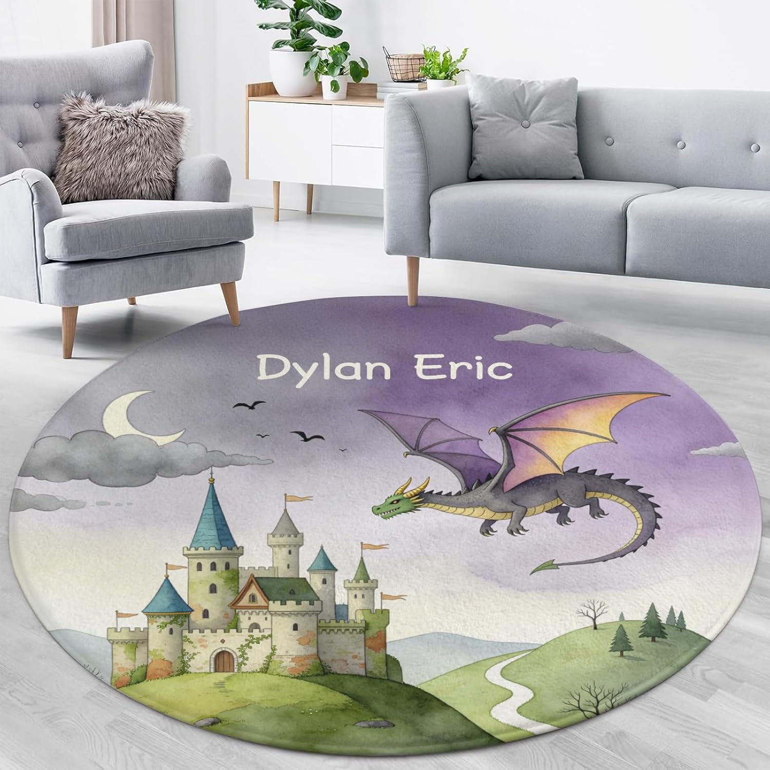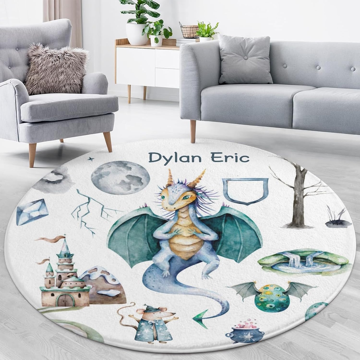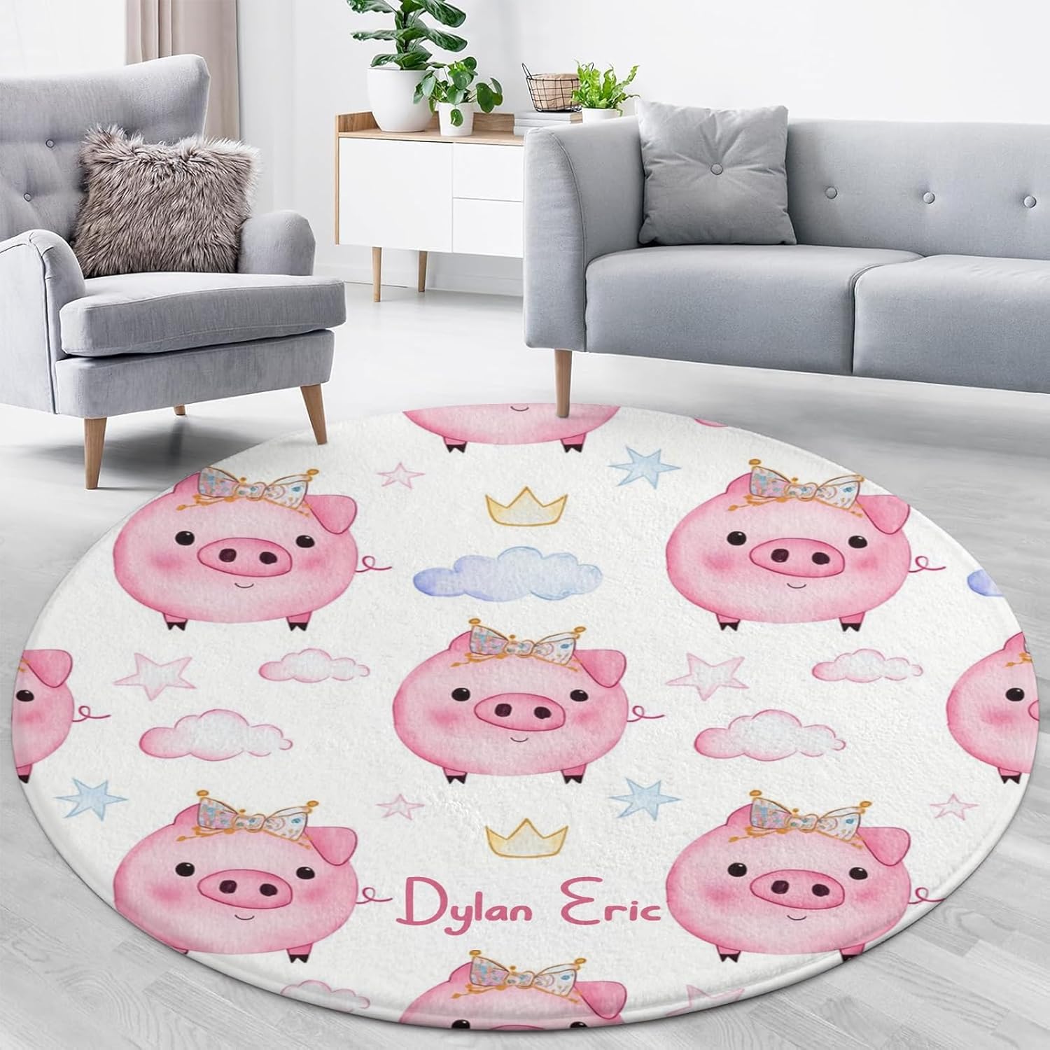 This customized area rug is made of high-quality material with a fine, soft texture and has a non-slip backing on the bottom that prevents the rug from shifting and effectively prevents slipping. This non-slip rug can provide a safe area for your baby to crawl or play at home. Meanwhile, this customized carpet has many cute patterns, perfect for decorating your baby's nursery, you can choose your favorite style, add your baby's name and customize the carpet for your baby.The customized rug has 3 sizes to choose from:31.5 inches x 31.5 inches (80 cm x 80 cm)39.4 inches x 39.4 inches (100 cm x 100 cm)47.2 inches x 47.2 inches (120 cm x 120 cm)You can choose the right size according to the size of the room.Area rugs are practical and versatile and can be placed in bedrooms, nurseries.