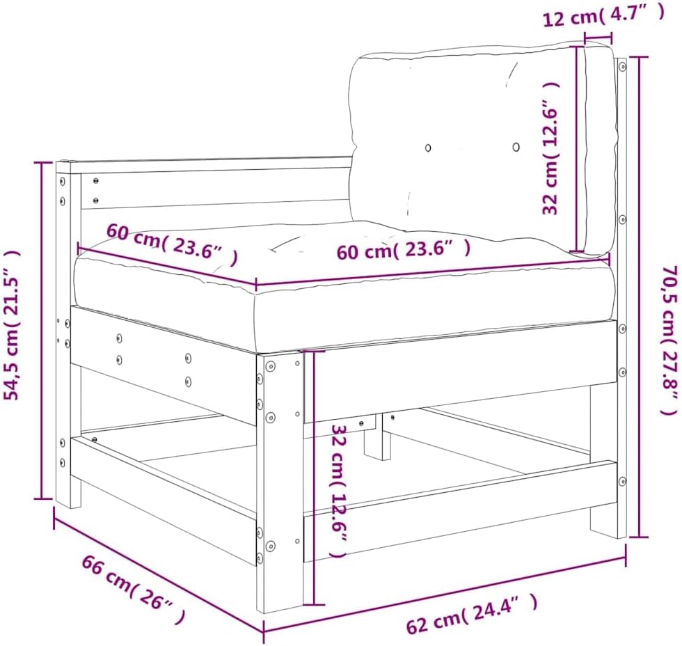 This stylish Rustic White Garden Chair isfor turning your outdoor space into a comfy retreat while bringing in that rustic vibe. With its lovely white finish, it fits right in with gardens, patios, and balconies, giving you a nice spot to enjoy sunny days or starry nights.Modular Construction: This chair is designed for flexibility, letting you rearrange it easily. Create your own seating layouts to suit your needs,for get-togethers or just chilling.Weather- Seating: Made with quality cushions wrapped in Oxford fabric, this chair can handle the weather like a champ. The fabric is vibrant and tough, keeping its good looks even in bad weather.Rustic Aesthetic: With its white finish on solid pine wood, this chair adds charm that enhances any outdoor space. It blends perfectly with nature, creating a warm and welcoming spot for lounging.Comfortable Design: With cozy cushions, sitting in this chair feels great. The seat cushions zip off easily for cleaning, making it simple to keep fresh and comfy.Space-Saving Size: At 26.0 inches wide and 27.8 inches high, this garden chair is fab for smaller balconies or snug corners in bigger patios. Its compact design is comfy without losing space for your outdoor layout.Color: White Shape: RectangularMaterial: Wood Solid Pine woodFinish: Painted Indoor/Outdoor: Indoor / OutdoorCover Included: NoRoom: Garden and terraceMaximum Number of People: 1Maximum Weit: 242.5 lbsDimensions: 24.4 x 26.0 x 27.8 in (W x L x H)Leg Height: 12.6 inWeight: 22.27 lbsSeat Depth: 23.6 inSeating Capacity: 1Swings: NoDelivery Contains: 1 x Garden chairAssembly Required: YesRecommended Number of People for Assembly: 1